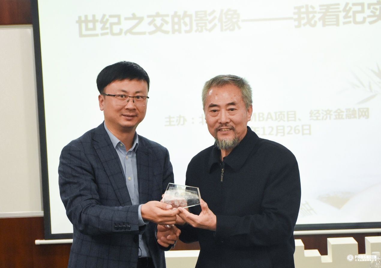 最后,胡武功先生和主持嘉宾安永灿先生以自己的摄影经历与现场听众展开交流。北大汇丰公关媒体办公室主任、经济金融网主编本力老师代表学院向胡武功先生赠送纪念品并合影留念。