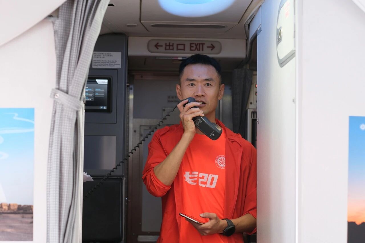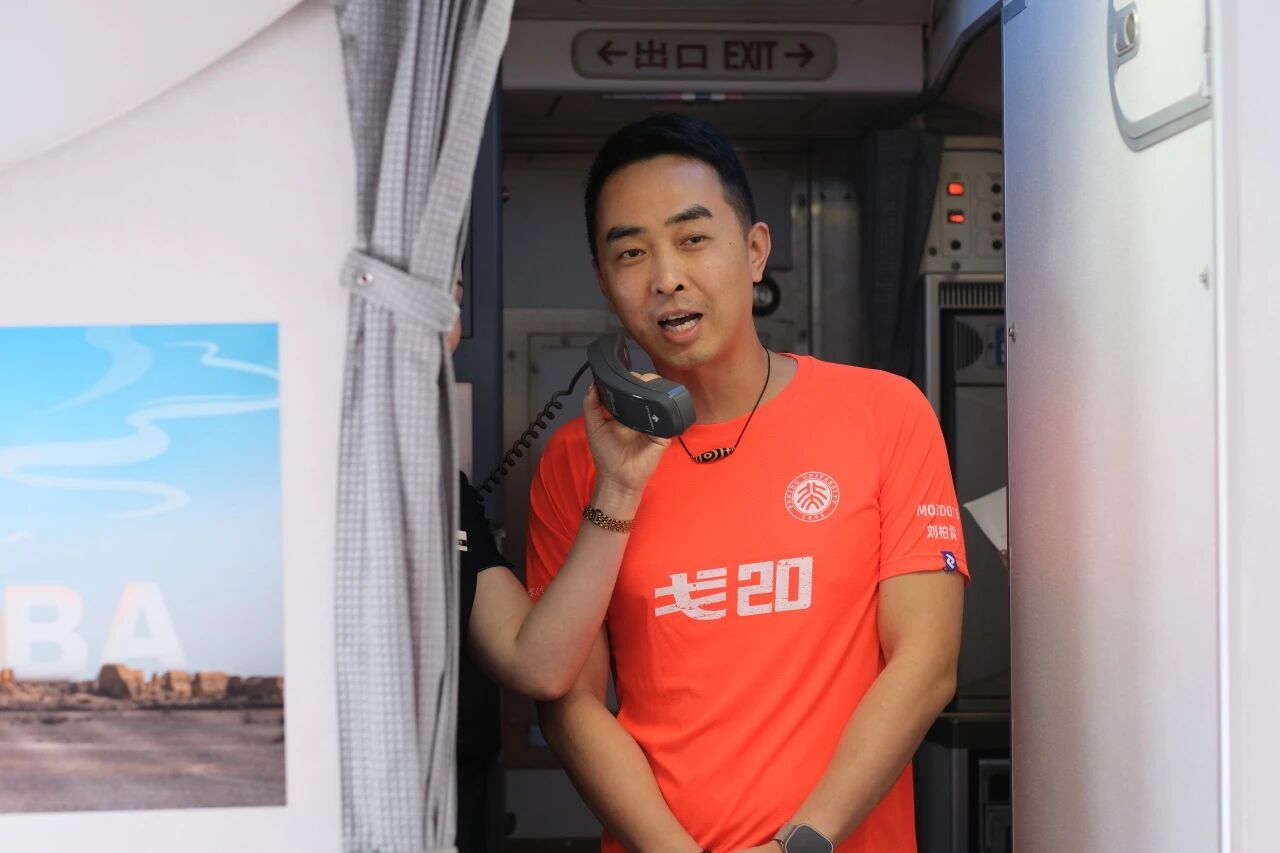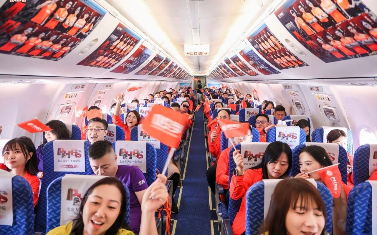 飞机升空,机舱内举行简短而庄严的出征动员仪式。北京大学汇丰商学院院长助理、MBA项目主任刘柏霄教授与戈友会副会长张建华先后发言,代表学院与戈友会送上嘱托与祝愿。话语简练,情感深沉,既点燃了即将踏上征途的决心,也唤起了共同奔赴的责任感。气氛热烈而有序,掌声一次次响起,队员们目光坚定、斗志昂扬。这是一次集体意志的凝聚,是一场精神出征的宣告。